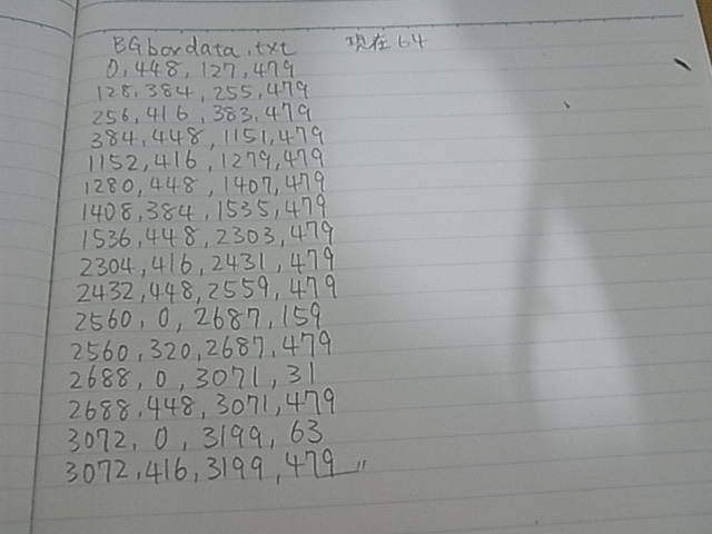 そのため、背景にはグラフィックデータの他に、各ブロックごとの四角形の左上と右下の座標のデータが必要になります。