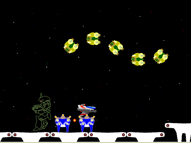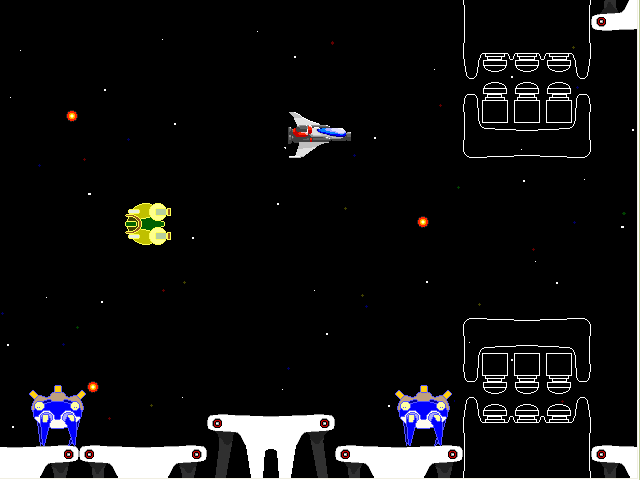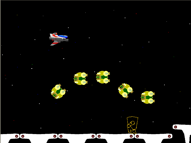 左へ真っ直ぐ敵機を飛ばすのと同じ関数で移動させ、表示をアニメーションにしてるだけです。