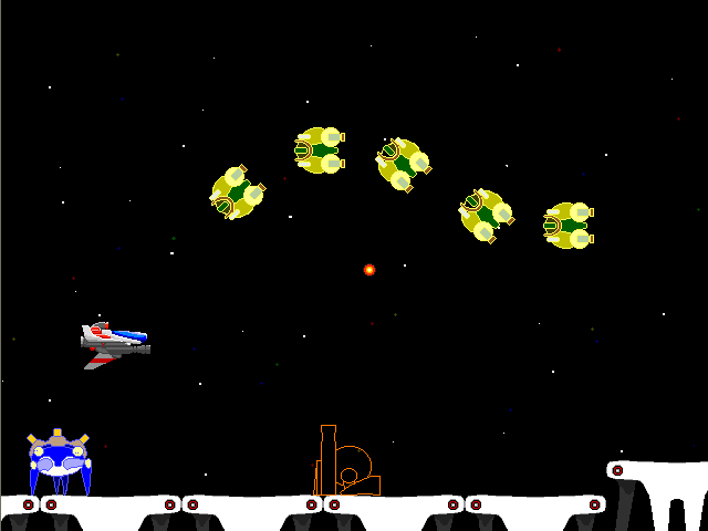 基地侵入前の部分に関してはあと一機、上空に向かって破壊可能なミサイルを連発する移動砲台を実装できればパワーアップアイテム以外の部分でRーTYPEの基地侵入前のギミックは網羅できた事になるんじゃないかと思います。