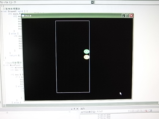 あとは、今の時点で、ぷよのつながりや、連鎖の判定は、多次元配列変数を使うだろうなあってイメージがあるので、ぷよの座標を表す変数を仮想配列内の座標に変更しておいた。