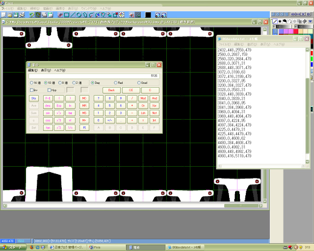 こんな感じで書き足した背景にあわせて、同時に当たり判定の座標が入ったテキストファイルも更新してゆきます。